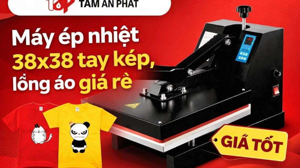 Máy ép nhiệt 38x38 tay kép lồng áo, giá rẻ cho xưởng in nhỏ